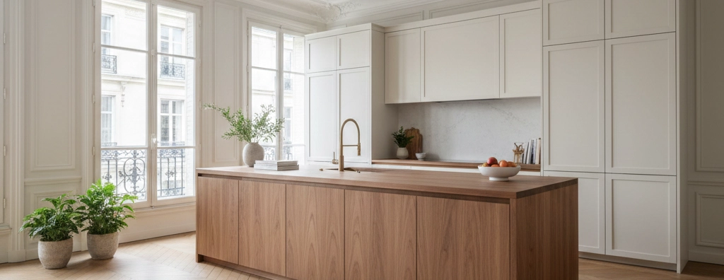Ce que votre cuisiniste ne vous dit pas : Chez Sweetch Interior, nous travaillons chaque jour avec des clients qui ont fait ce choix stratégique : commander leurs caissons chez un cuisiniste de confiance, puis nous confier la réalisation de façades vraiment sur-mesure, avec des finitions qu'ils n'auraient jamais trouvées dans un catalogue standard.